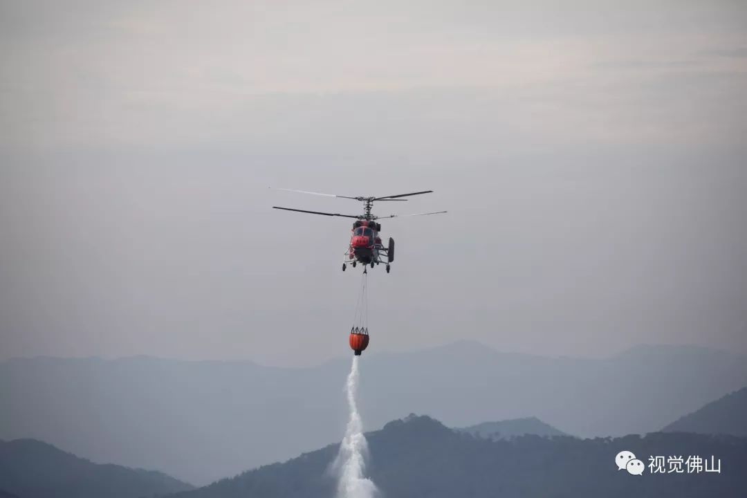 12月7日17时,在上三台村附近山林,救援直升机多次来回扑救山火。佛山日报记者吕润致