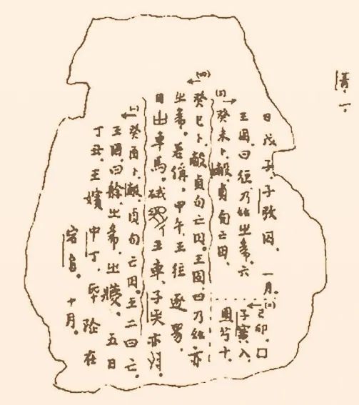 刻辞正反面释文。释文记录了商王武丁的一起车祸。