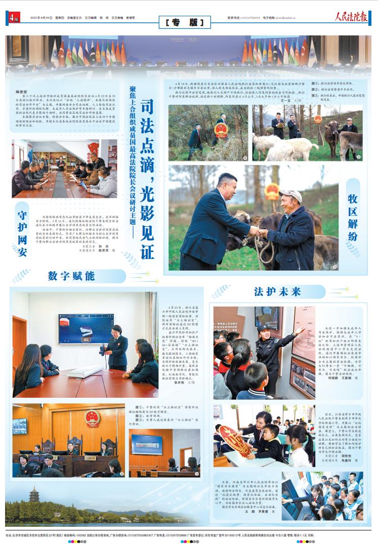 人民法院报聚焦会议专题,特推出专版,展示中国法院在上述四个专题领域的做法和经验,用镜头记录各地法院促进更高水平法治中国建设的坚实足迹。