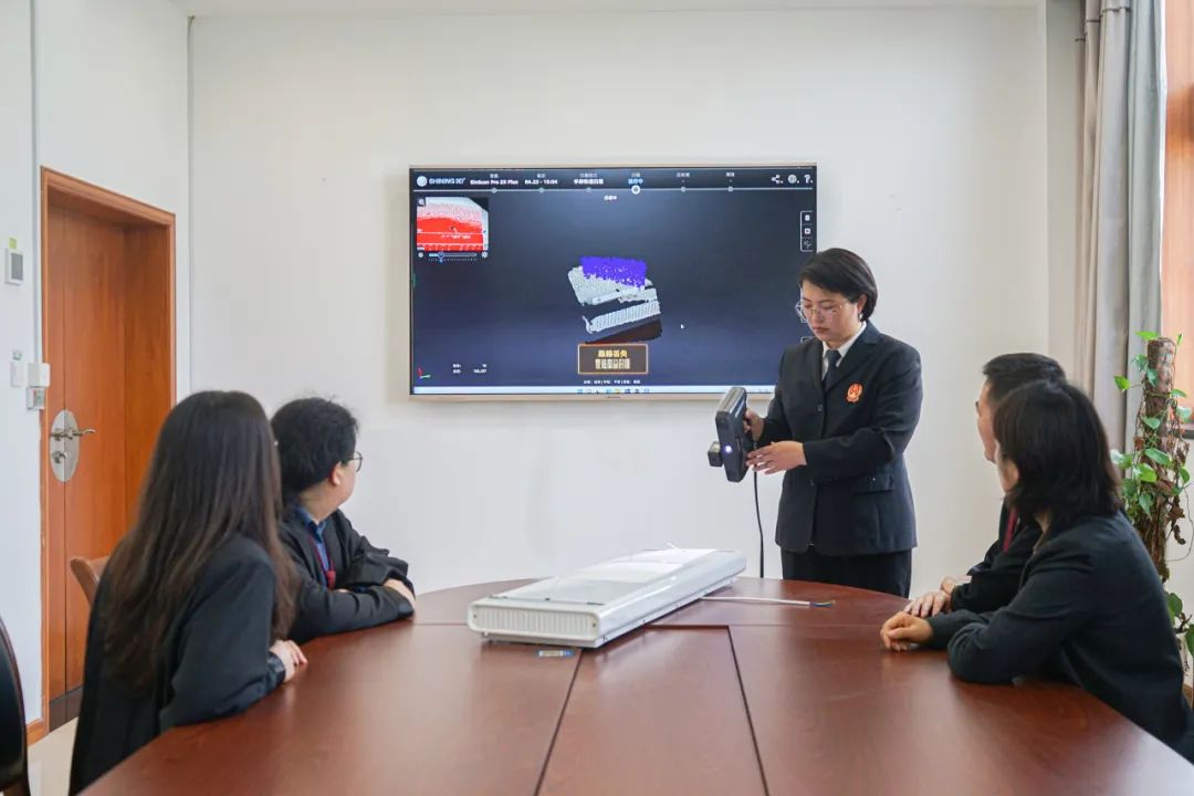 嘉兴中院针对知识产权案件物证仓库“物满为患”问题,创新“3D + AI+区块链”“云上物证室”,应用结构光技术、激光探测技术、三维视觉算法记录物证外形全貌,实现秒级数据采集、毫米级尺寸精确计量,最终在电脑中重构物证虚拟模型,打造数字化、智能化物证管理应用新模式。
