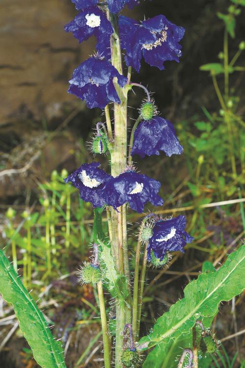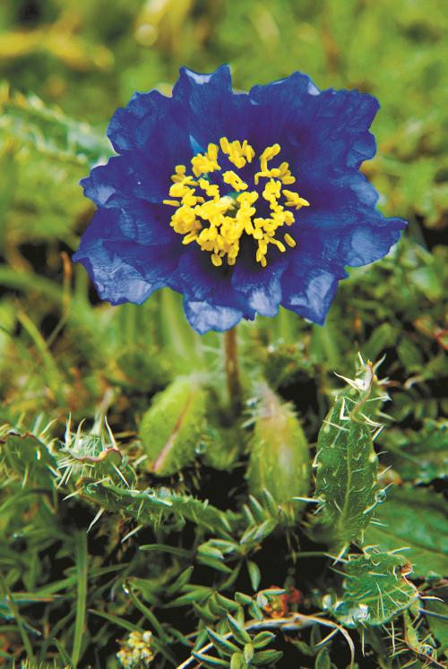 形色惊艳的“梦幻之花”绿绒蒿,独有一种桀骜孤高的气质,艳而不娇,用绒毛或刚毛武装自己,在三江源国家公园等高寒之地迎风笑日,顽强生长。图为多刺绿绒蒿 张胜邦摄