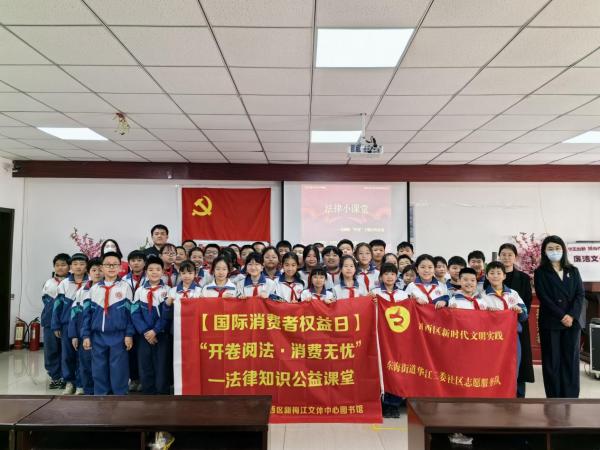 天津北方网讯:3月15日,新梅江文体中心图书馆联合华江里第二社区居民委员会、天津职业技术师范大学附属小学,共同举办了“开卷阅法·消费无忧”国际消费者权益日法律知识公益课堂活动