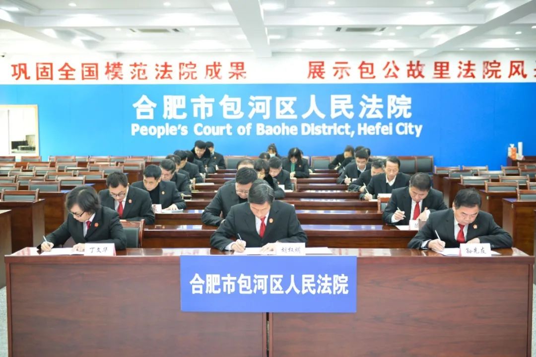 为加强领导干部学法用法工作开展,院党组高度重视、统筹安排。12月4日中午,包河法院组织全院副科级以上领导干部参加宪法法律知识测试。该测试考题分为单选、多选和判断题。全体参加考试的领导干部们均在规定时间内独立完成了测试,并取得了优异的成绩。