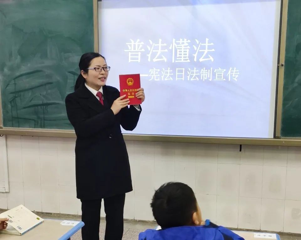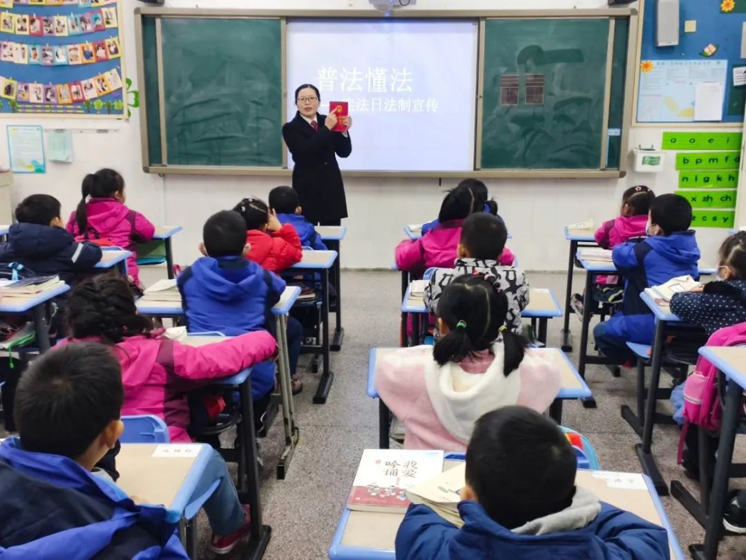 12月4日上午,民二庭副庭长杨雯雯走进望湖小学,为这里一年级的孩子们送上精心准备的宪法小知识。