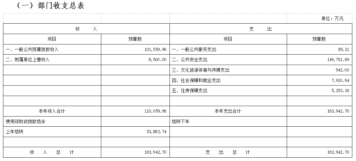 (一)部门收支总表