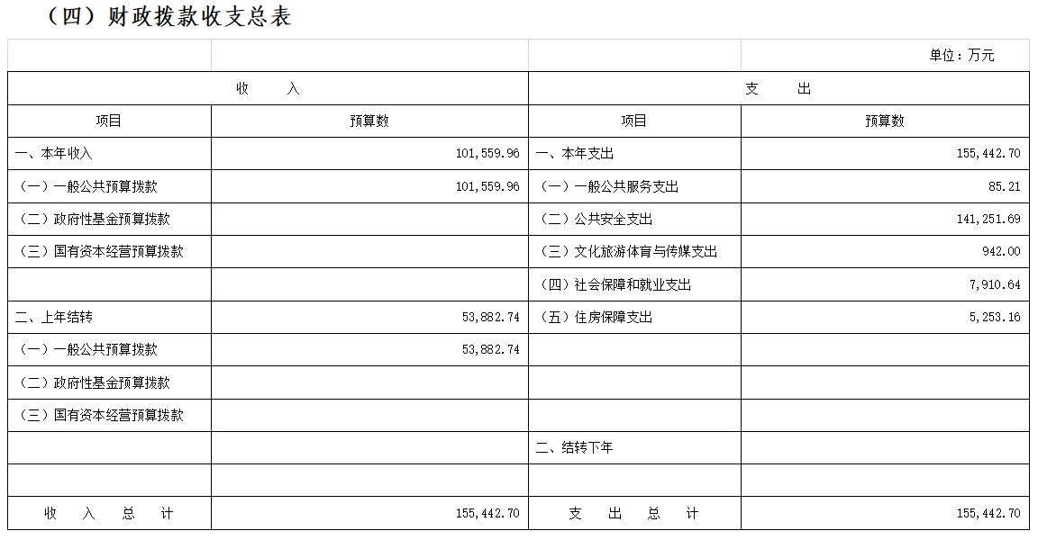 (四)财政拨款收支总表