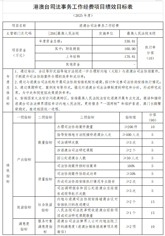 2025年“二上”预算中最高人民法院本级项目支出绩效目标实现全覆盖,涉及一般公共预算拨款54,019.98万元。