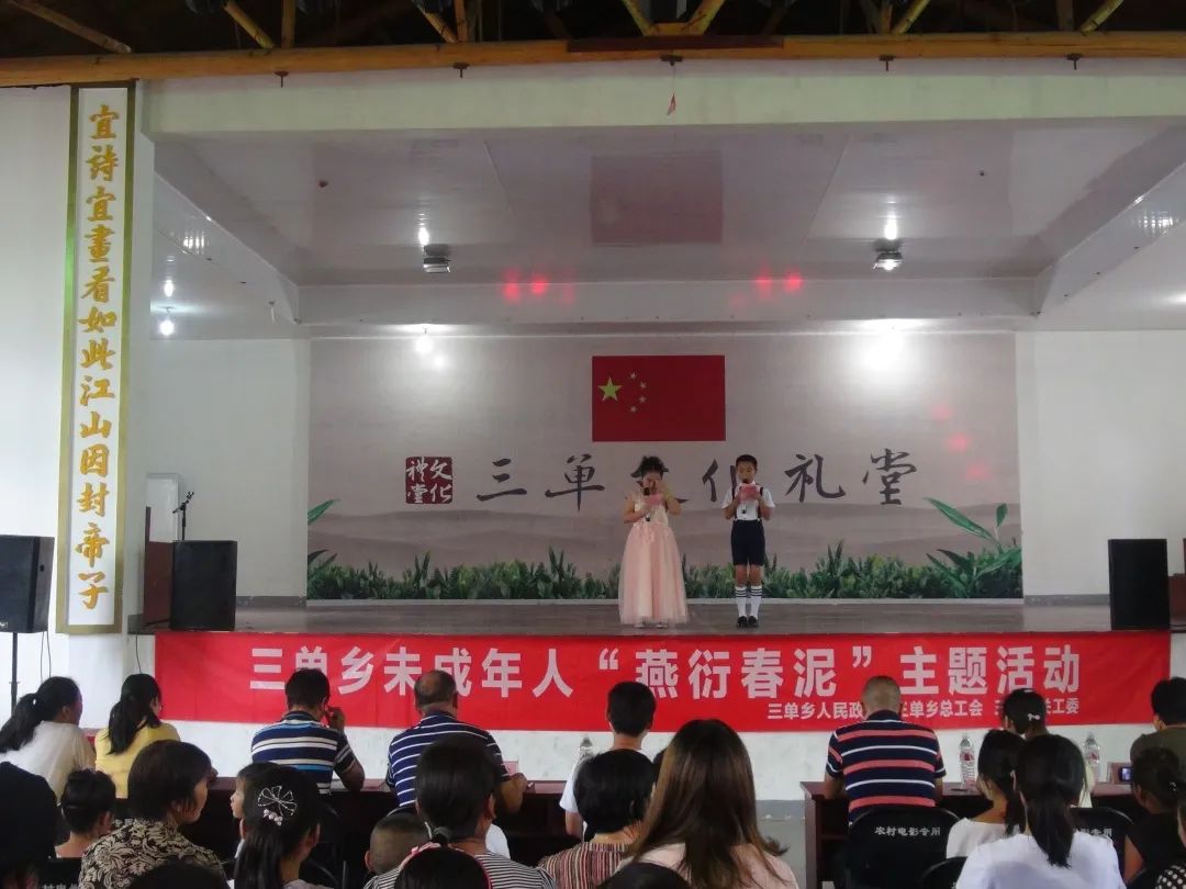 2017年开始,三单乡组织了“燕衔春泥”未成年人服务项目。该项目发动退休老教师、大学生、村干部、网格员、妇女主任等广大志愿者积极参与,在暑期为三单乡各村留守儿童组织暑期课堂、武术培训、演讲比赛、法制讲堂、安全教育讲座、文艺演出及体育比赛等丰富多彩的活动,切实构建学校教育、家庭教育、社会教育三结合的机制,全面加强未成年人思想道德建设工作,促进未成年人健康成长。3年多来,项目从初具雏形到取得显著成效,孩子们学知识、学技能、学才艺、净化心灵、提升素养,在潜移默化的活动中培养了爱国、敬党、孝父母的价值观。