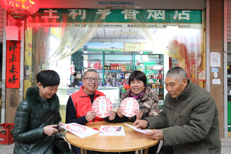在台州市仙居县福应街道月塘社区,“律动”普法志愿服务队员和周边居民一起用剪纸说“法”,将法治元素融入到剪纸技艺中,让群众在体验文化乐趣的同时,使得法治文化深入人心。
