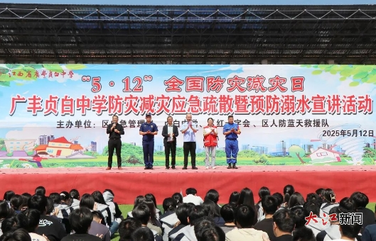大江网/大江新闻客户端讯 (通讯员 纪金红)为进一步加强平安校园建设,增强师生的防灾减灾意识,5月12日,时值第17个全国防灾减灾日,广丰区应急管理局、区红十字会、蓝天救援队、贞白中学等单位在贞白中学联合开展了“防灾减灾,守护生命”专题教育。区应急管理局领导和学校党委副书记、校长周霓出席活动并讲话,全校5000多名师生参与,通过沉浸式体验与专业指导,将“安全第一”理念深植心中。