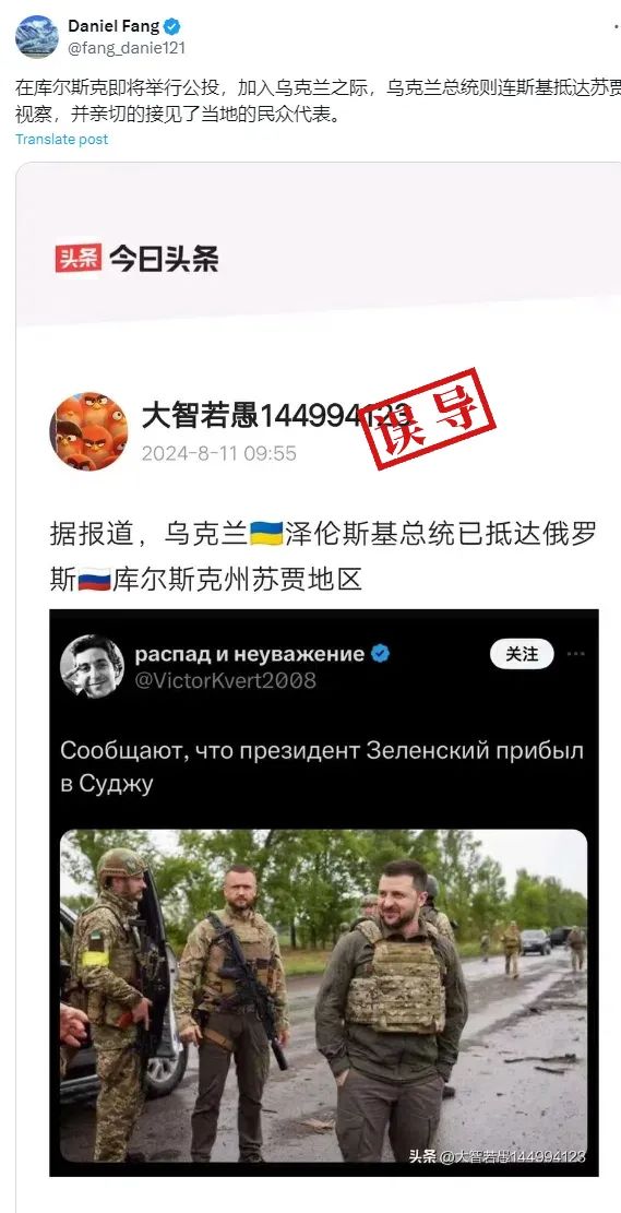 至于网传“泽连斯基前往苏贾视察”的图片,反搜发现,此图在2022年就已经出现。2022年5月29日,BBC在报道“泽连斯基罕见地出现在了基辅以外的地区”这一消息时使用了这一图片。据报道,此图显示了泽连斯基在访问位于乌克兰哈尔科夫州前线的军事基地时的画面。仅从图片出现的时间便可判断,相关图片不能作为“泽连斯基前往苏贾”的证据。