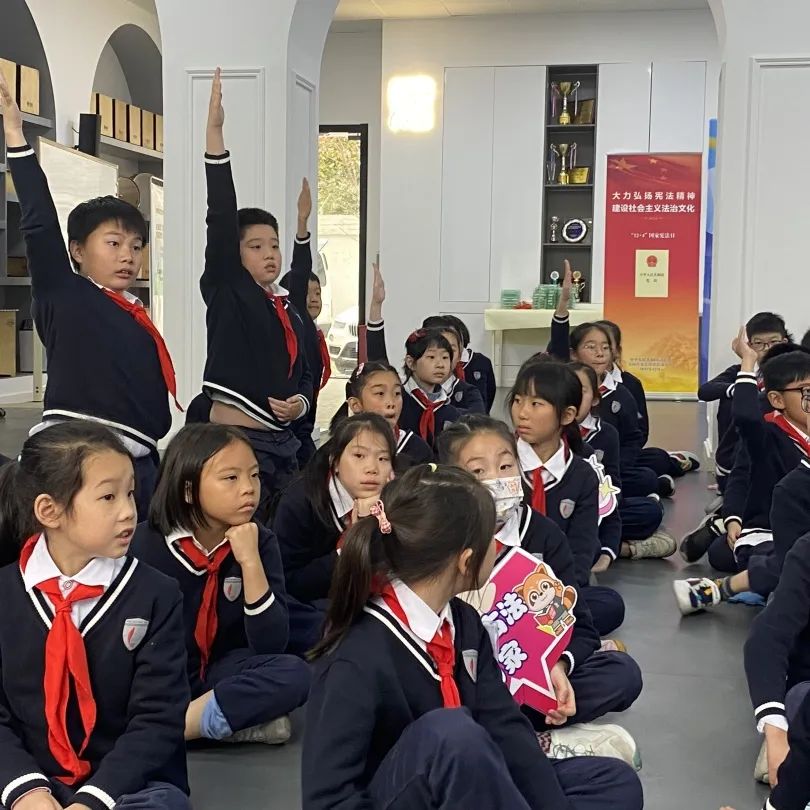 在最后的宪法知识“你问我答”中,同学们积极互动,纷纷举手回答问题,小朋友们在轻松快乐的氛围中了解到其实法律就在我们身边,意识到遵守宪法需要从我做起,从身边的小事做起,在校内遵守学校规章制度,在校外遵守法律法规,做知法、懂法、守法的好公民。