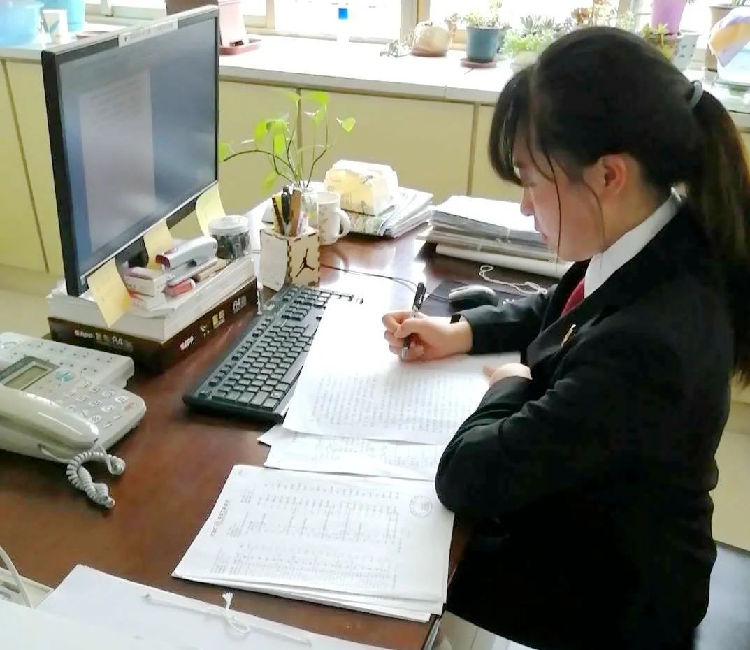 她勤勤恳恳,兢兢业业、勤奋进取、无私奉献,守初心,守底线,做人民的好法官,做法律的忠实维护者。