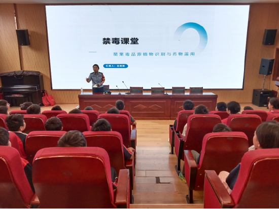 活动中,市公安局谯城分局的民警,以图文并茂的形式,生动形象的介绍了什么是毒品,药物滥用以及药物滥用的危害,如何识别和防范新型毒品等方面深入剖析防范药物滥用相关知识,引导青少年正确认识各类毒品、药物滥用危害,以及如何预防违法犯罪。随后,组织现场学生共同观看了毒品预防教育微电影,进一步增长远离毒品预防毒品的知识。民警还讲解了民法典的相关知识。市谯城分局的民警以及花戏楼街道办事处的工作人员,引导同学们观看了介绍毒品知识以及如何远离毒品的宣传教育图片,并再次对学生进行教育。活动最后,同学们集体宣誓,一定要自觉远离并抵制毒品,做遵纪守法的小公民。