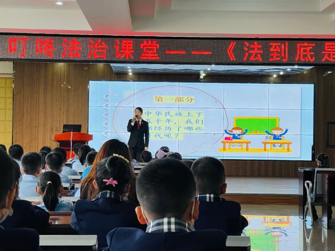2022年5月12日,赤峰市中级人民法院叮咚宣讲团成员孟宪宁、潘杭池走进赤峰市第九小学,以“法到底是干什么哒”为主题给一年级的孩子们上了一堂生动有趣的法制课。