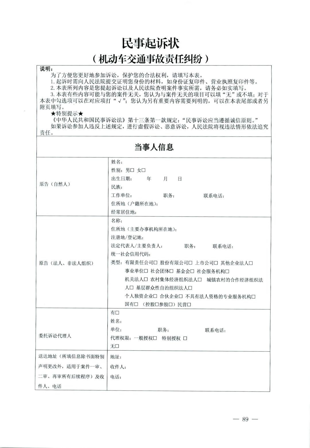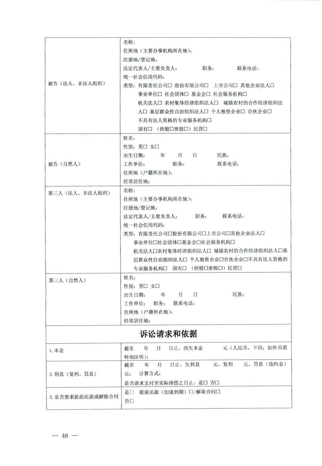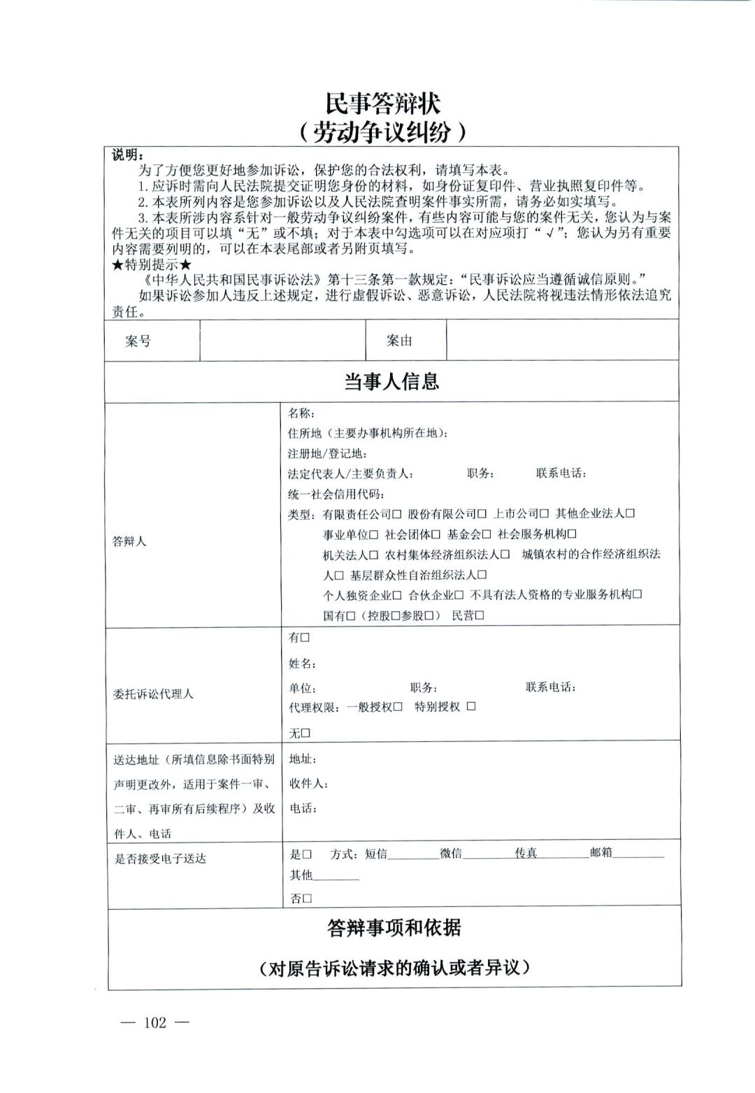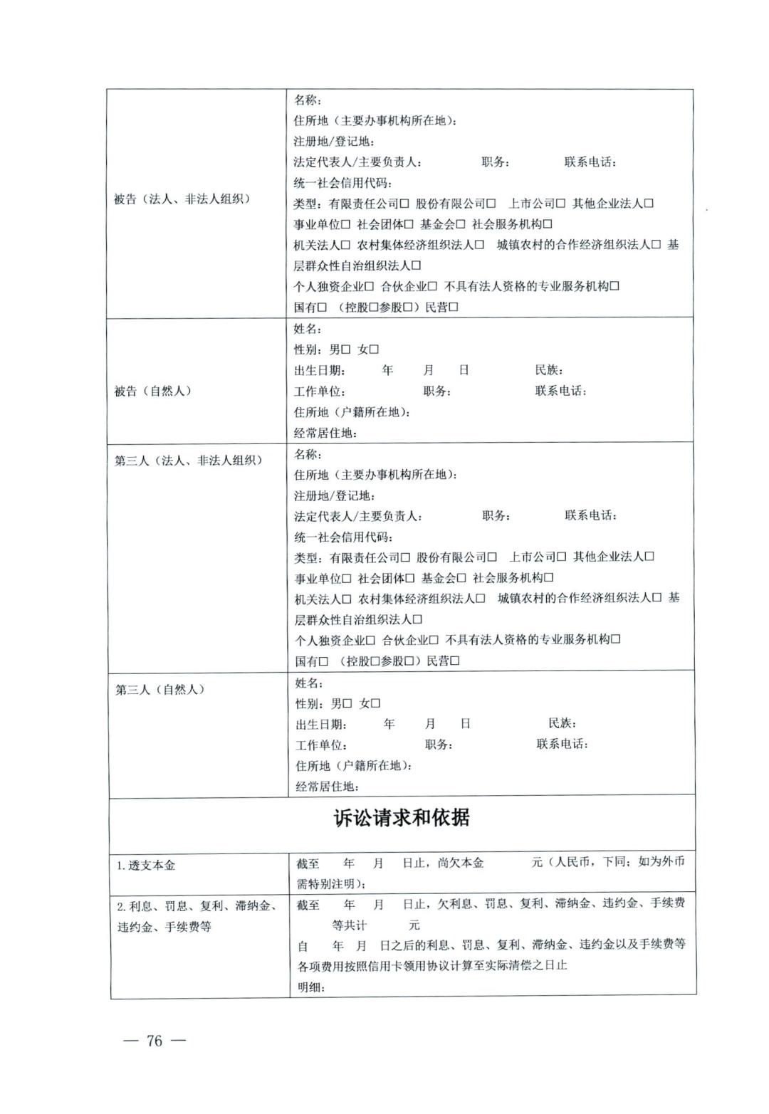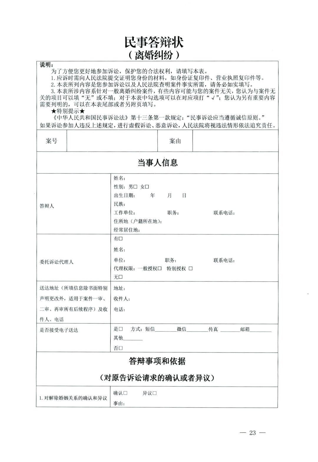 此次发布的示范文本采用表格化、要素化方式,意在让人民群众看得明白、用得方便。各级人民法院、司法行政机关和各律师协会要引导、指导好当事人使用示范文本。各级人民法院、人民法庭要在官方网站醒目位置提供示范文本下载渠道,在诉讼服务大厅提供空白文书样式和实例参考文本,方便当事人现场取用。对于未委托诉讼代理人、在立案窗口起诉的当事人,人民法院要根据当事人的需要,耐心询问、指导、帮助当事人依照示范文本填写有关内容。当事人坚持提交其他形式起诉状、答辩状的,要充分尊重当事人的选择,不得以格式或者内容不符合示范文本要求为由,拒绝立案或强制要求反复修改,不合理增加当事人的诉讼负担。