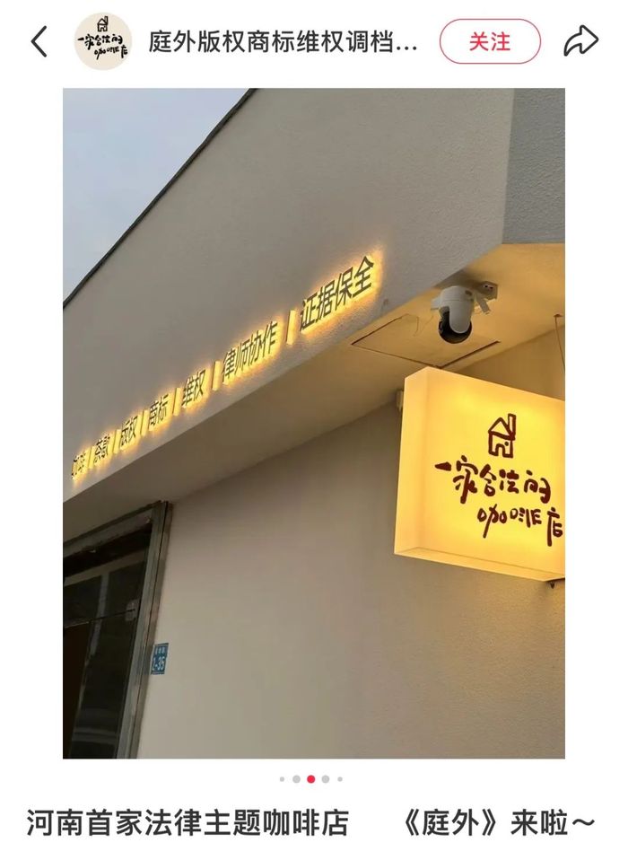 比如在门头设计上,这批咖啡店会清晰在门头标注出“咖啡、维权、律师协作”等醒目字样,直接把法治元素醒目地传达给消费者。