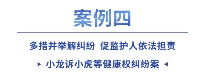 在充分了解案件事实及双方诉求的基础上,对主动约架的未成年人双方进行批评教育和耐心劝解;对未尽到监护职责的未成年人父母发出《家庭教育责任告知书》,责令其签署承诺书并强化监护职责。法院对小龙及其监护人释明诉讼风险、引导理性维权,对小虎及其监护人阐明侵权责任及应负的赔偿义务,通过法庭教育,促使双方正视自身的过错及责任,最终促成达成调解协议。小虎父母作为其监护人履行了赔偿义务,支付小龙各项损失7500元,双方矛盾化解,案结事了。同时,法院坚持未成年人特殊保护原则,积极延伸审判职能,多方联动助力未成年人小龙顺利复学,通过法治副校长进校园“以案释法”,提升未成年人知法、尊法、守法、用法意识和自我保护能力。
