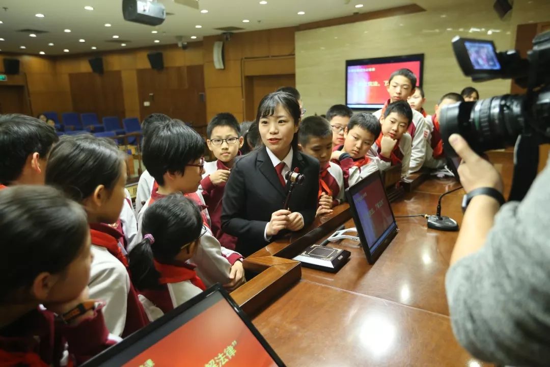 在少年法庭,同学们在法官的介绍下了解了少年法庭的布局、特色和功能,同学们争先恐后地坐在审判长、公诉人等席位上,与法庭零距离接触,增进了对法院、法庭、法官职业的感性认知。在多功能室,色彩缤纷的桌子,各式各样的书籍和玩具与庄严肃穆的法庭形成鲜明对比,让同学们感受到法院对未成年人的特殊保护与人文关怀。