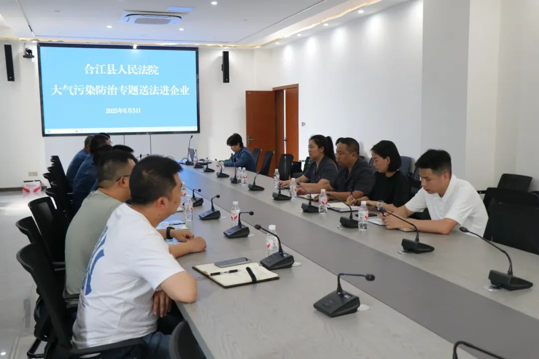 同日,合江县法院联合县生态环境局走进川天华企业,围绕《环境保护法》《大气污染防治法》等法律法规,摆“法治摊”为工人普法。