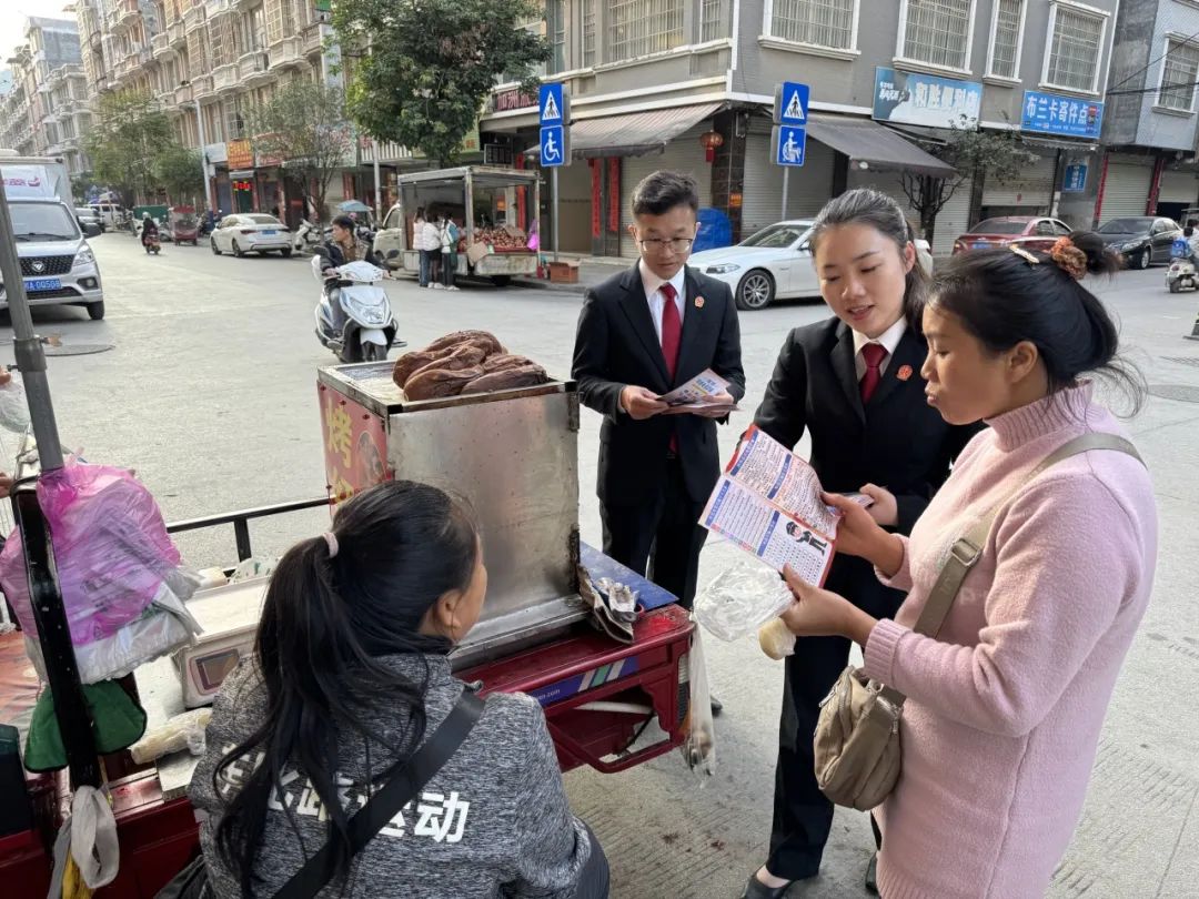 渠洋支部党员王丽航带队,在社区设立法律咨询台,为社区居民提供法律咨询,发放法律宣传资料,包括宪法、预防电信诈骗等手册,营造了浓厚的法治氛围。