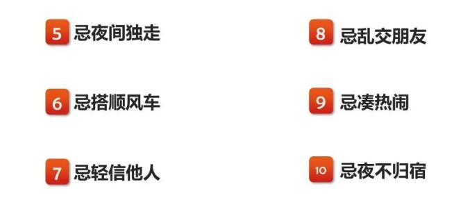 ⑤住宿、出行尽量结伴,时间、场所要正确选择,特别时要选择安全的环境;