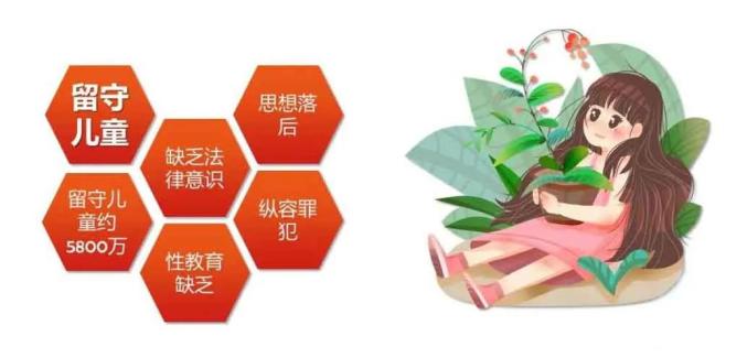 留守儿童:我国留守儿童约5800万,由于留守儿童多数处在农村,思想落后、性教育知识缺乏,法律意识薄弱,导致很多低于对于性犯罪者较纵然,从而导致留守儿童遭受侵害的比率增加。
