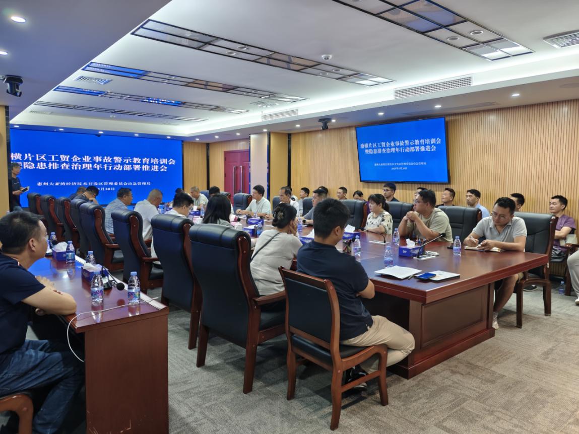 为深刻吸取惠州市及我区近期生产安全事故教训,全力保障塘横片区建设期安全稳定,扎实推进2025“隐患排查治理年”行动,坚决防范和遏制各类事故发生,2025年5月28日下午,区应急管理局组织召开塘横片区工贸企业事故警示教育培训暨隐患排查治理年行动部署推进会议,区应急管理局副局长、监管执法组组长、西区街道办应急办主任及建生电路板(惠州)有限公司、32家塘横片区工贸企业主要负责人参加会议。