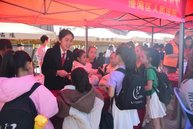 12月1日,广东省汕头市澄海区人民法院趁当地隆都店市古墟开集,组织干警到现场开展“宪法宣传周”普法宣传活动,利用趣味普法、互动讲解和派发普法宣传资料等方式解读宪法。图为法院干警向组团赶集的小朋友讲解宪法内容。