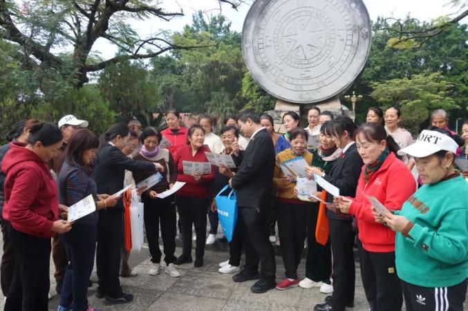 11月29日,安徽省明光市人民法院干警来到淮河生态环境司法保护基地,通过发放宣传资料、互动答题等方式,向群众宣传宪法,增强群众尊法、学法、守法、用法的意识。图为法院干警向群众讲解宪法知识。