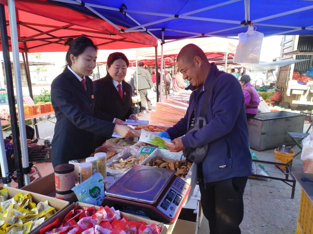 法院干警利用农村赶集日人流量大的特点,走进辖区集市,向赶集的群众、摊主发放普法宣传单,积极宣传《民法典》中与群众生活息息相关的法律条文,解答法律咨询,引导群众遇事找法、解决问题用法、化解矛盾靠法,让普法宣传“面对面”接地气,服务群众“零距离”聚人气。