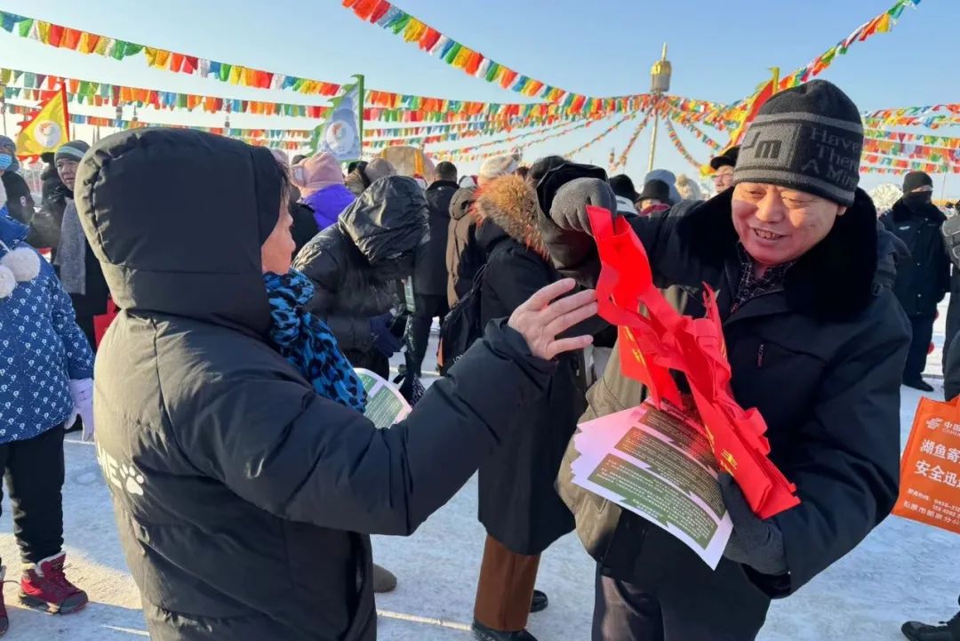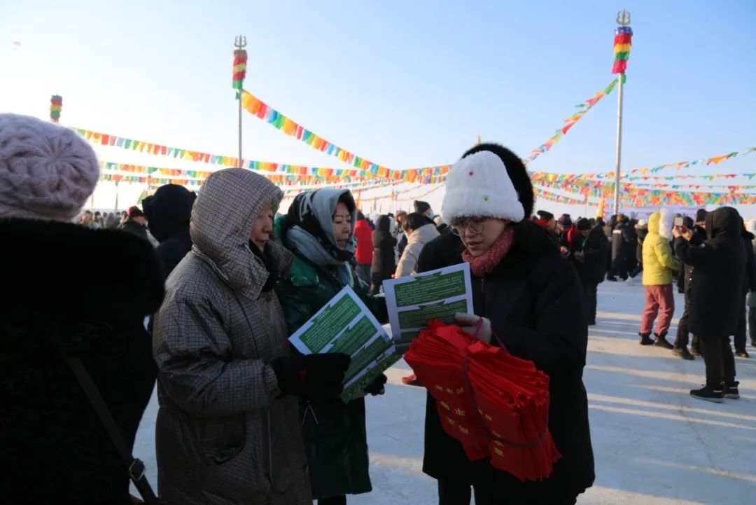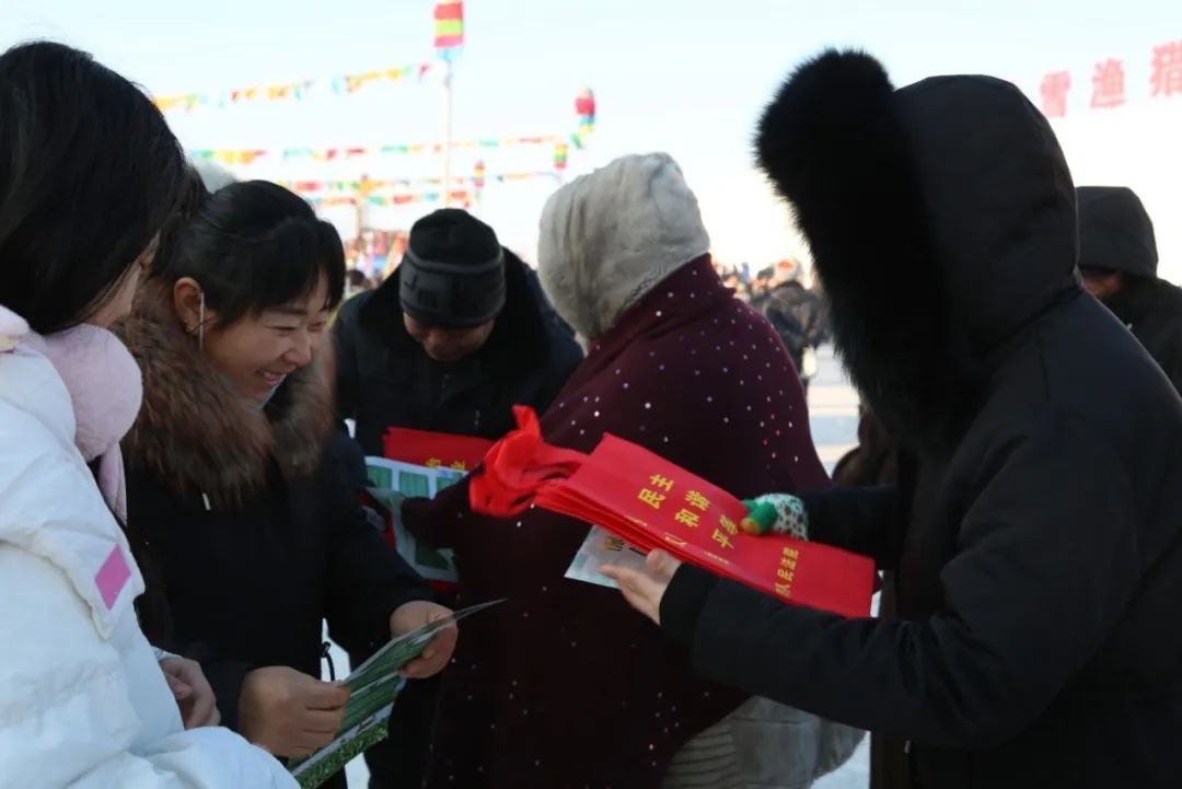 12月28日,查干湖第22届冰雪渔猎文化旅游节盛大开幕,值此盛事,前郭法院干警们来到冬捕节现场,开展“乐享冰雪查干湖 共聚盛事法随行”主题法治宣传活动。