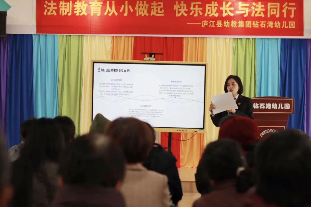 近日,庐江法院立案庭法官助理王芳走进钻石湾幼儿园,开展新学期普法宣传活动。此次宣传以“守护童心 法治同行”为主题,带领幼儿园孩子们的家长学习了将于2025年6月1日开始实施的《中华人民共和国学前教育法》。