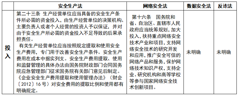 建议二:在《数据安全法》中,增加涉及数据安全投入的相关规定,具体可借鉴《安全生产法》和《企业安全生产费用提取和使用管理办法》的规定。