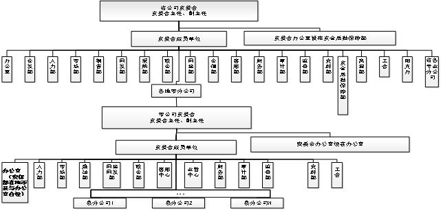 图一,某省运营商安全生产管理体系改革前组织构架(2010-2012年)