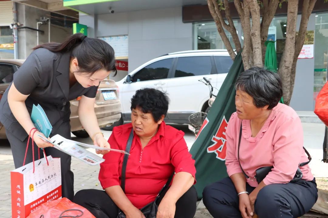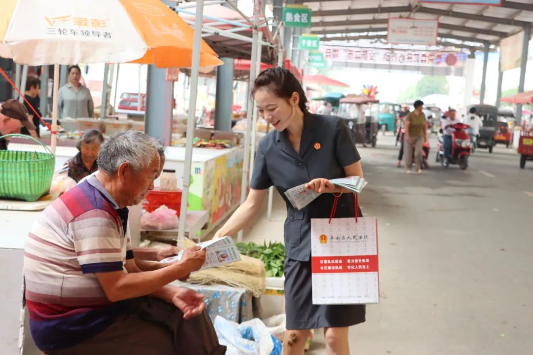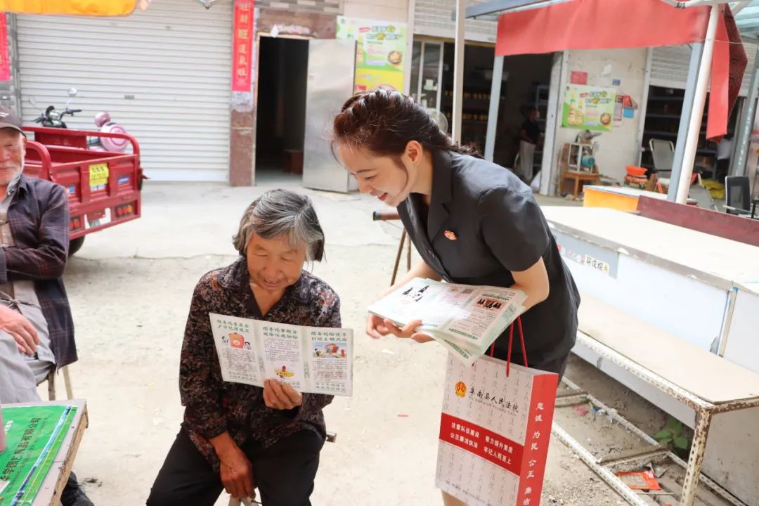 “遏制高价彩礼,为婚姻减负,为家庭松绑。”“别让‘天价’压垮了真情,别让‘面子’绑架了幸福。”“拒绝高价彩礼,莫让彩礼失了‘礼’。”......干警自编顺口溜、手拿普法宣传彩页走进集镇的闹市区,结合《中华人民共和国民法典》相关法律规定,边向过往群众发放宣传页边解释高额彩礼可能带来的危害,呼吁大家应以子女幸福为出发点,相互体谅,协商确定一个合情合理、力所能及的彩礼数额,鼓励大家移风易俗,简约成礼,减少不必要的婚庆排场和奢华攀比,共同塑造文明乡风、和美家风、淳朴民风。