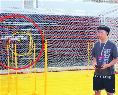 图为全国青少年无人机大赛(天津市赛)比赛现场。