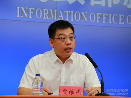 民政部新闻发言人、办公厅副主任贾维周主持发布会并通报二季度民政重点业务工作进展及三季度相关安排