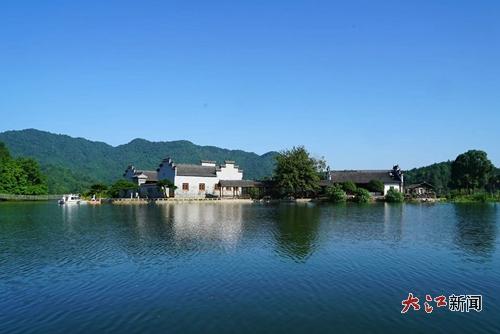 采访团成员们搭乘游船在湖面航行,两岸青山划过,景色十分壮丽。从空中俯瞰,水库呈树枝杈形。湖面上星罗棋布着沙洲岛、安乐岛等10多个大小不一、特色各异的岛屿,最大岛屿面积达28亩。在其中的沙洲岛上,有一幢江浙风格的古典三合院民宿,名为“安其居”,带来了安然闲适的意境,犹如同一颗明星点缀在湖中。