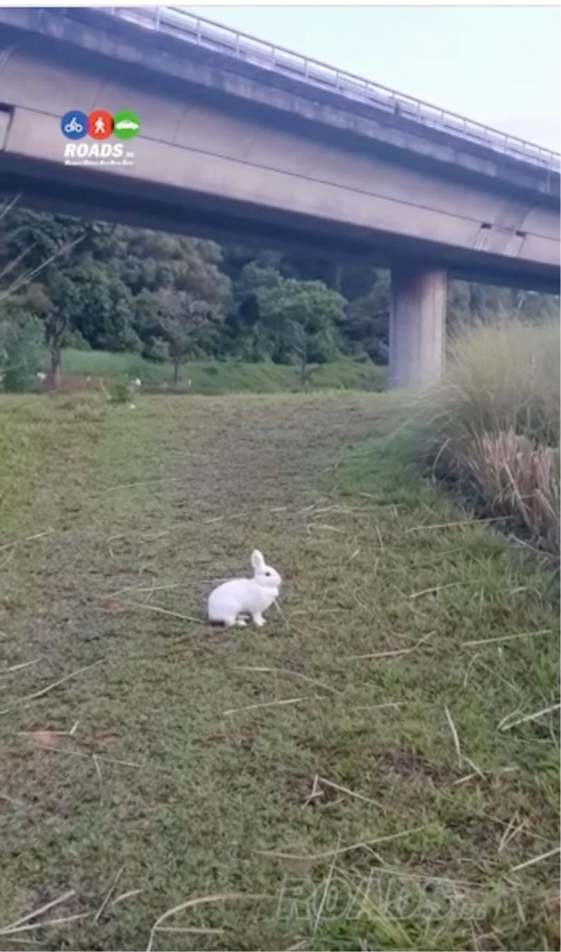 本周二,在社交媒体上流传着的一段视频显示,在地铁轨道附近的淡滨尼生态绿地,有一只孤零零的白兔。有人发现了这只兔子,并报告给了防虐待动物协会。
