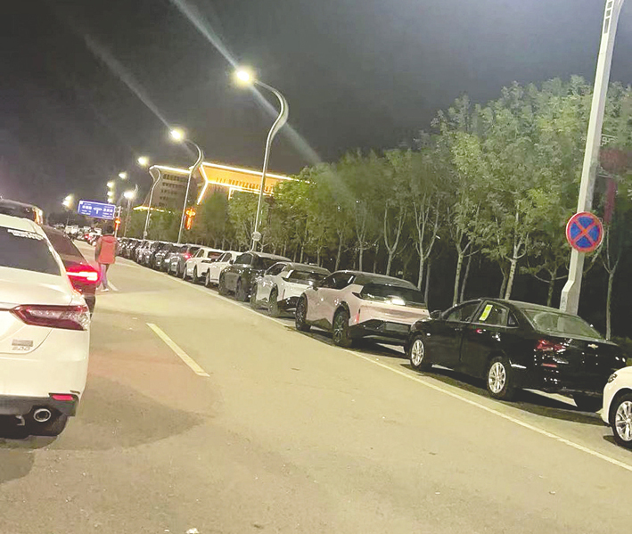 霍尔果斯口岸排队出关的车辆。受访者供图