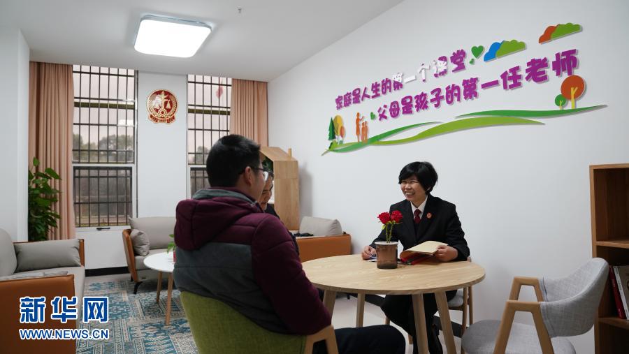 这是11月26日,江西省贵溪市人民法院泗沥人民法庭的法官周淑琴(右)在贵溪市人民法院调解一起案件。新华社记者 胡晨欢 摄