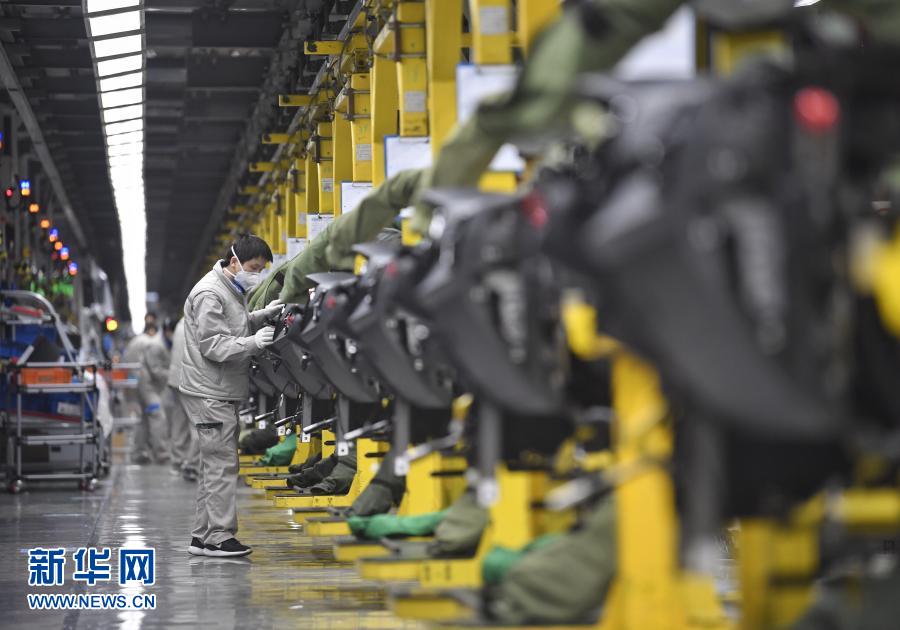 这是2月19日,一汽大众成都分公司工人在总装车间内作业。新华社记者 刘坤 摄