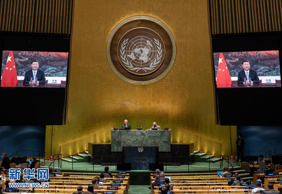 这是9月22日,国家主席习近平在第七十五届联合国大会一般性辩论上发表重要讲话。新华社发(联合国供图/埃瑟金德尔·德贝贝 摄)