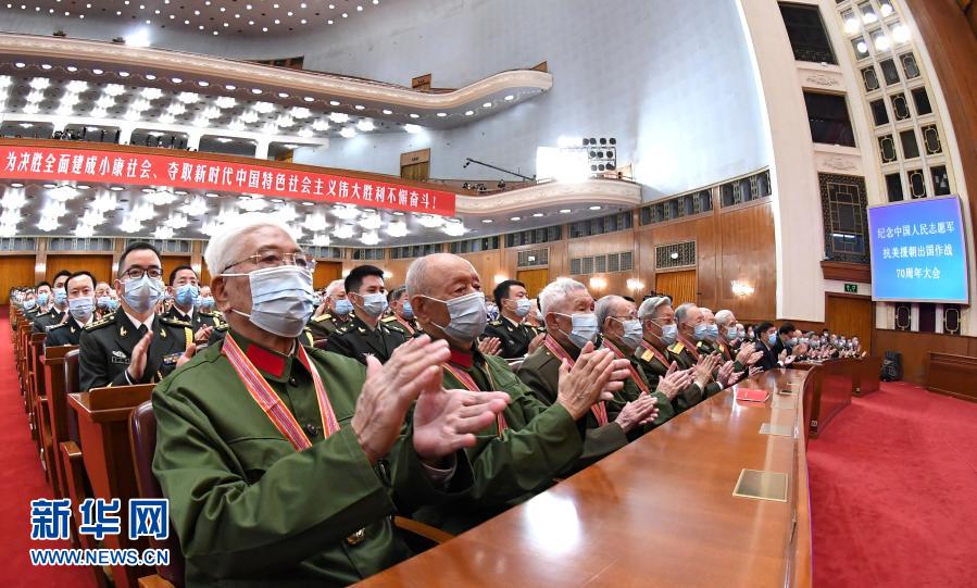 这是10月23日,志愿军老战士、老同志在纪念中国人民志愿军抗美援朝出国作战70周年大会上。新华社记者 姚大伟 摄