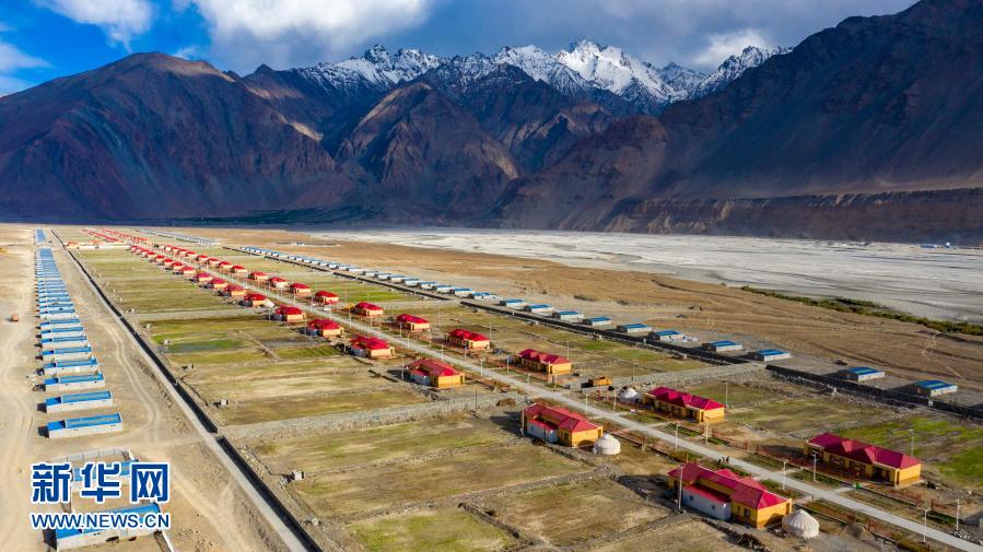 这是6月6日拍摄的新疆喀什地区塔什库尔干塔吉克自治县达布达尔乡热斯喀木村易地扶贫搬迁后的新貌(无人机照片)。新华社记者 胡虎虎 摄