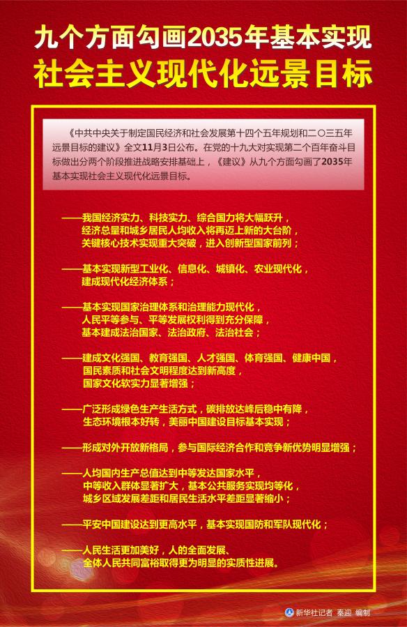 图表:九个方面勾画2035年基本实现社会主义现代化远景目标    新华社记者 秦迎 编制