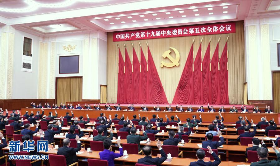 这是中国共产党第十九届中央委员会第五次全体会议现场。新华社记者 殷博古 摄