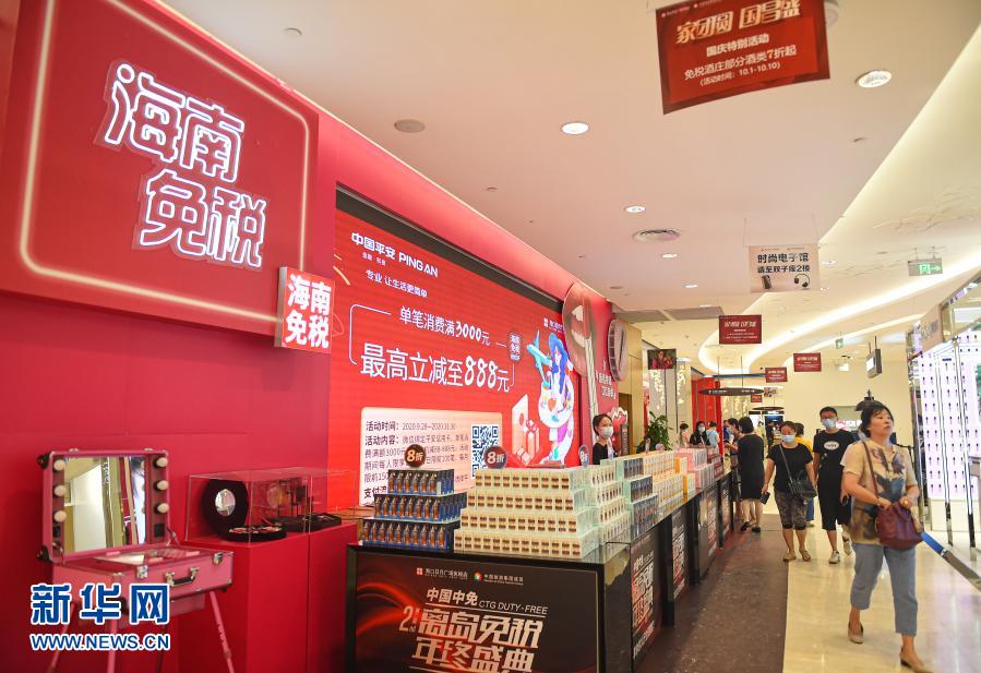 这是10月4日,消费者在海口日月广场免税店选购商品。新华社记者 蒲晓旭 摄