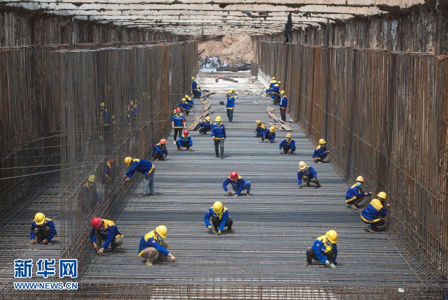 这是4月30日,来自中铁七局的建设者在武汉武九北综合管廊工程施工现场作业。新华社记者 肖艺九 摄